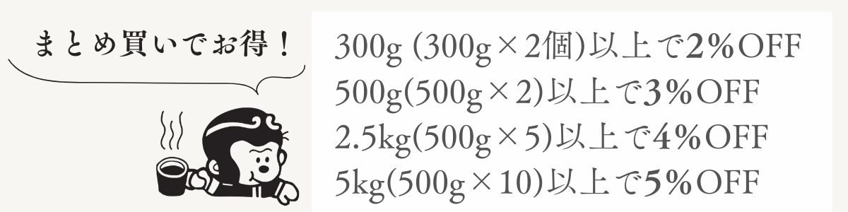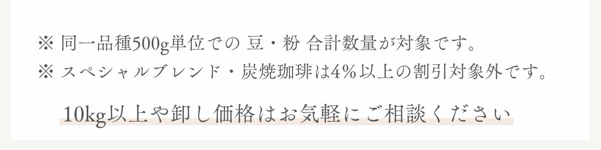 500g商品より豆・粉の混合でも、まとめ割引で計算されるようになりました。